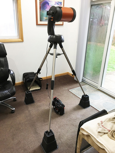 Celestron NexStar 6 SE, 152 mm (6 inch) x 1500 mm Schmidt-Cassegrain (Total = 21 pounds) on a set of DuraCasa Adjustable Bed Risers or Furniture Riser in Heights of 8, 5 or 3 Inches Heavy Duty Set of 4 (2016)